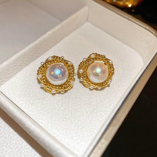Fan-shape Crystal Petal Pearl Drop Earrings