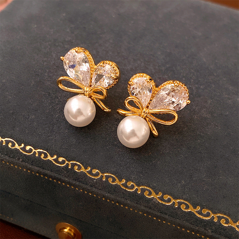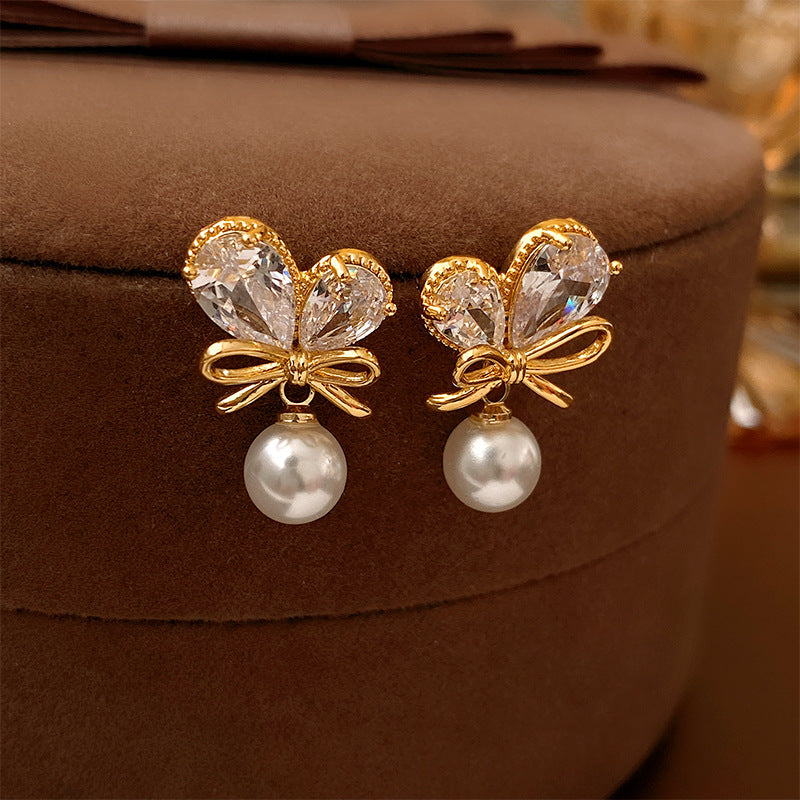 -Heart-shaped crystals forming a bow motif with a pearl drop