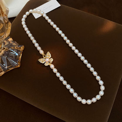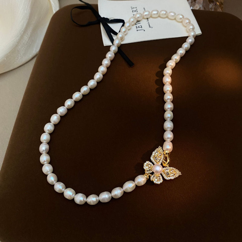 Elegant Freshwater Pearl Necklace with 18K Gold Plated Butterfly Charm
