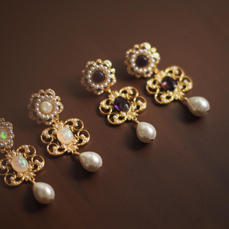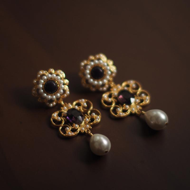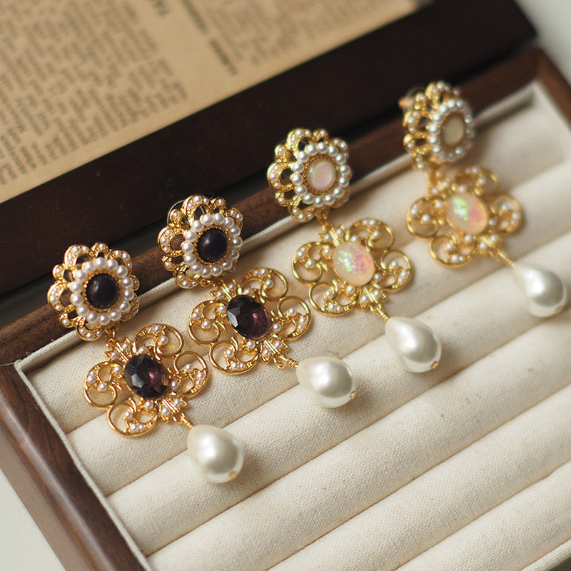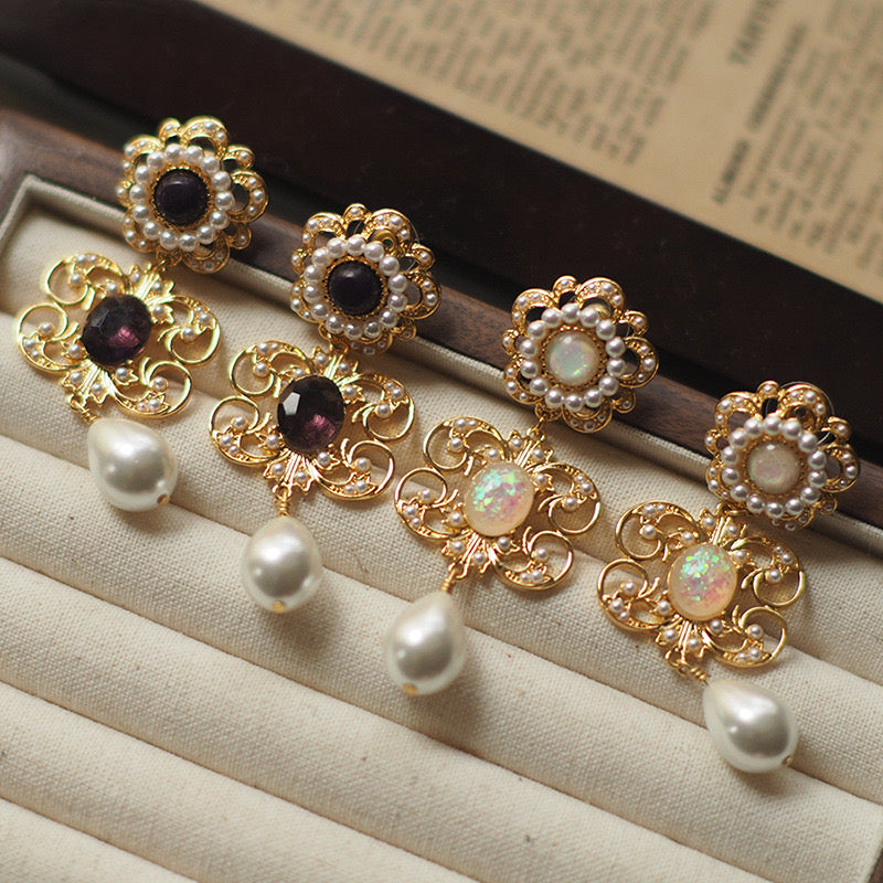 Embrace the timeless elegance of the Renaissance with our Florence-inspired vintage earrings. Featuring intricate gold filigree adorned with luminous pearls and shimmering gemstones, these earrings capture the opulence of a bygone era. The delicate drop design adds a touch of grace, perfect for elevating any ensemble.Let the luxurious details of these earrings transport you to the enchanting streets of Florence.