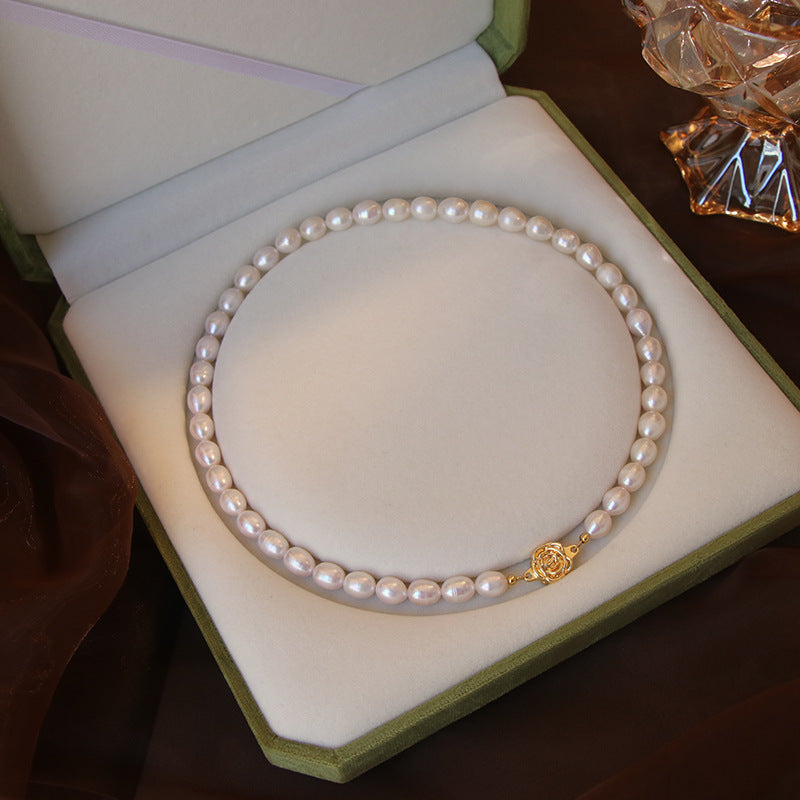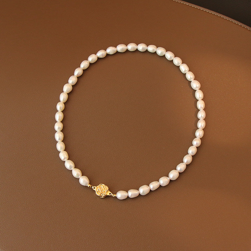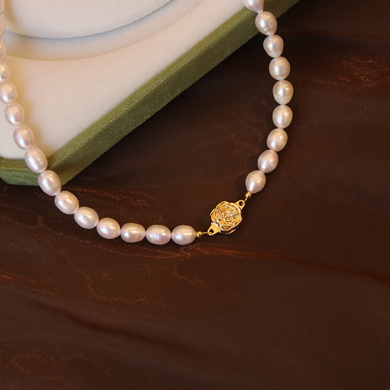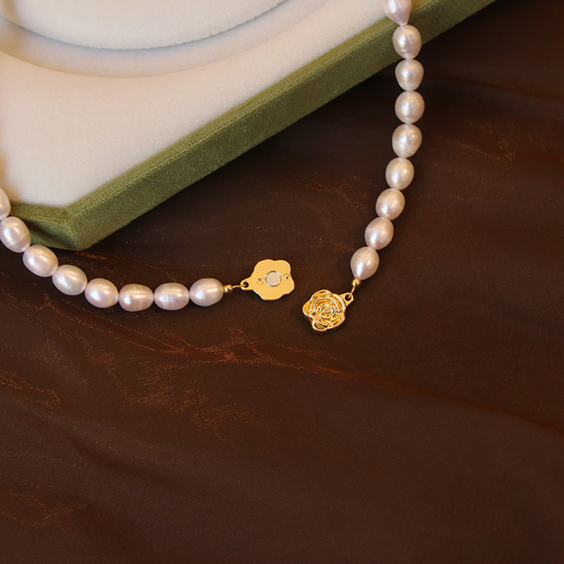 Freshwater Pearl Necklace with Gold Rose Clasp