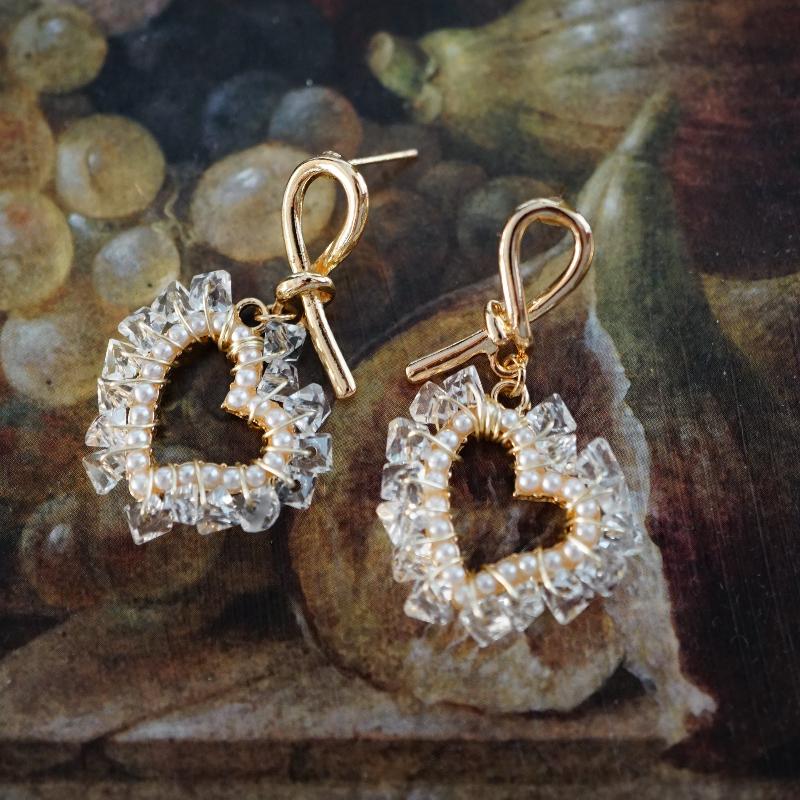 Elevate your style with these stunning heart-shaped crystal drop earrings. The delicate gold-toned frame showcases a cascade of shimmering clear crystals, creating a captivating and romantic look. Perfect for both casual and formal occasions, these earrings will add a touch of elegance to any outfit. The secure hook closure ensures a comfortable and confident fit.