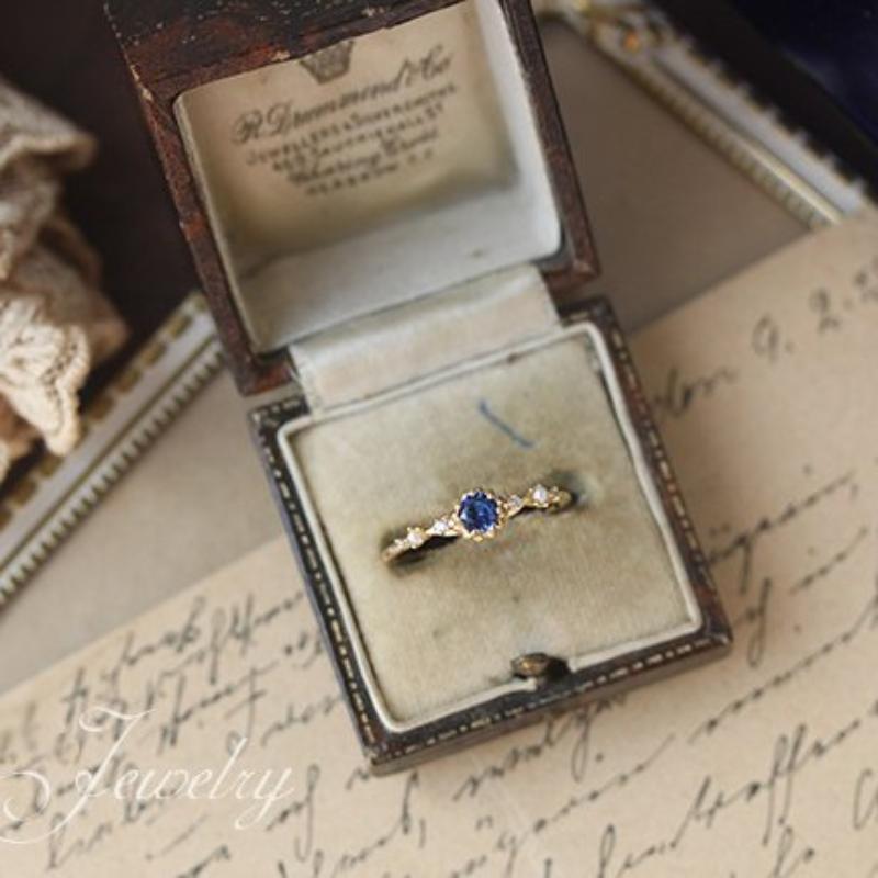 This elegant ring features a captivating beautiful blue sapphire, cut in a classic round shape, as its centerpiece. The deep, rich hue of the zircon is complemented by two delicate pearls, symmetrically placed on either side. The subtle shimmer of the pearls adds a touch of femininity to the overall design.