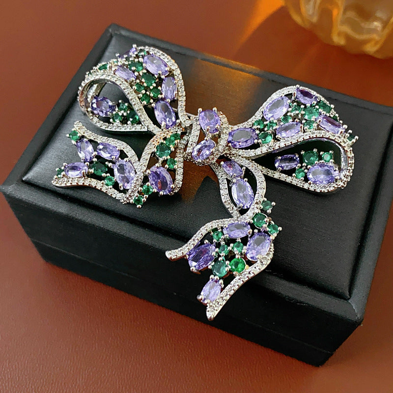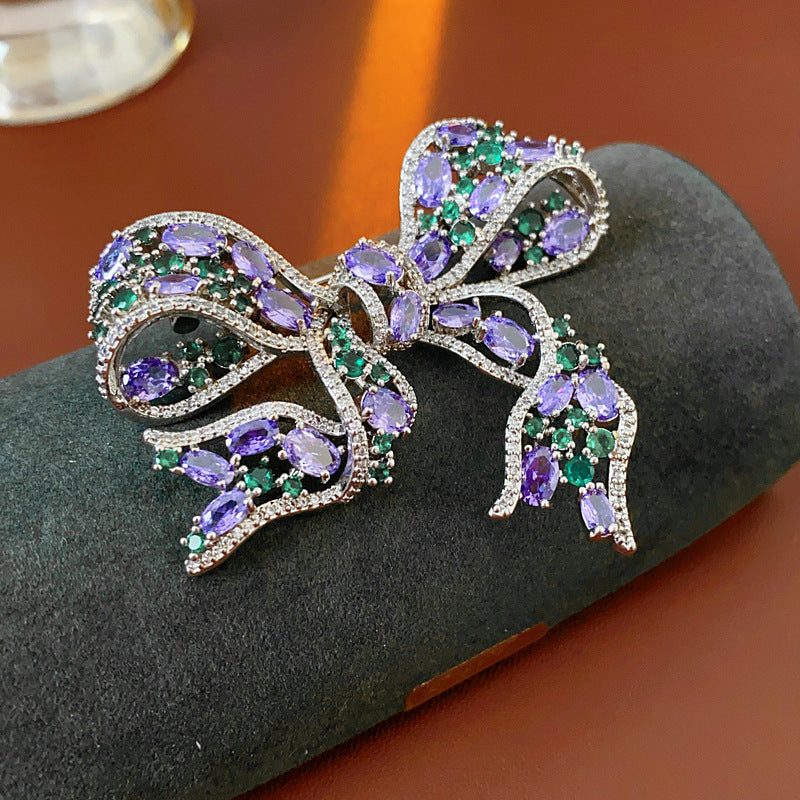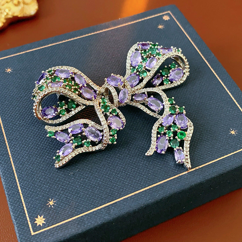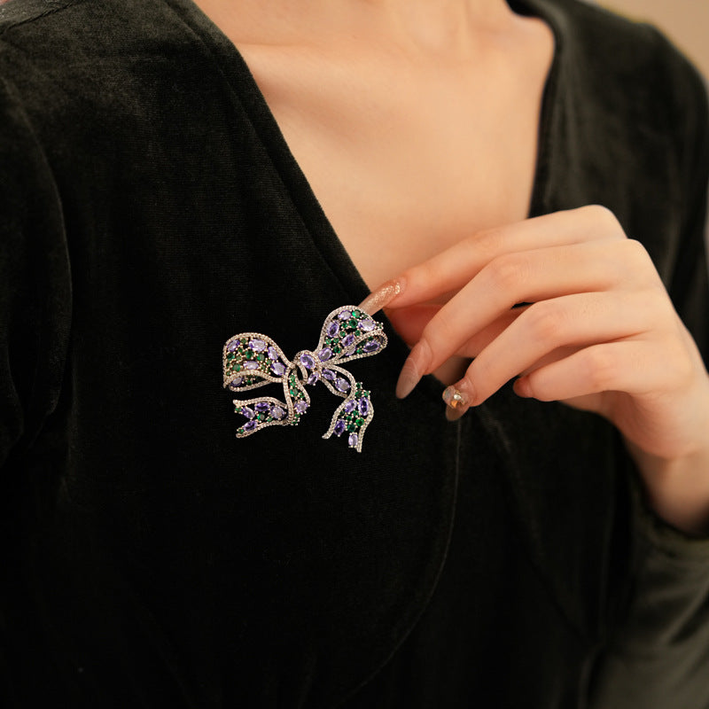 Add a touch of timeless elegance to your ensemble with this exquisite vintage-inspired bow brooch. Designed with shimmering purple and green zircon gemstones, this statement piece captures the beauty of classic jewelry with a modern twist. The intricate bow design is set on a high-quality alloy base, encrusted with delicate crystal details for an extra touch of sparkle. Whether worn on a blazer, scarf, or evening gown, this brooch is the perfect accessory for those who appreciate graceful, vintage charm. A must-have for jewelry lovers and an ideal gift for someone special.